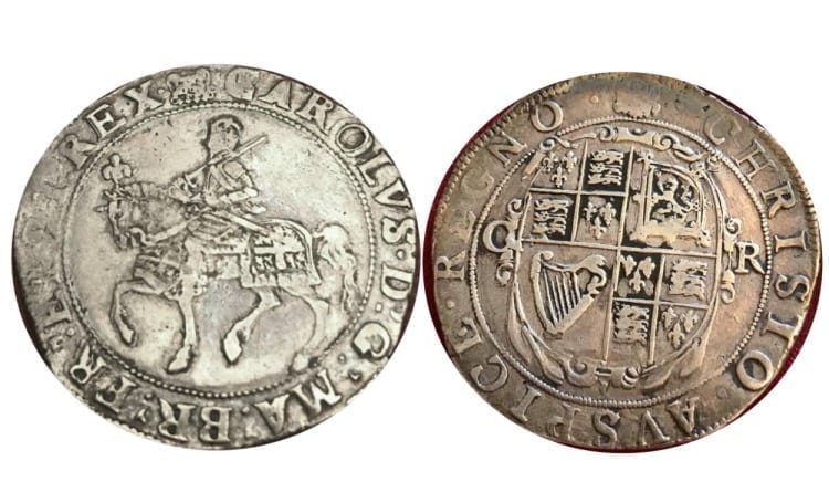 Charles I (1625-49), Halfcrown Minted at the Tower. Group II, type 2c, King on horseback left with sword over shoulder, initial mark portcullis (1633-4) both sides,