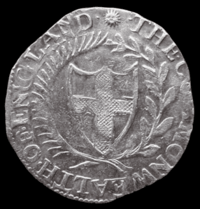 Commonwealth (1649-60), silver Shilling, 1653, English shield within laurel and palm branch, legends in English language, mint mark sun, .THE. COMMONWEALTH. OF. ENGLAND.,