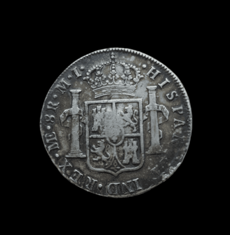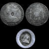 Obverse, small oval portrait of George III struck over portrait of Spanish monarch.
