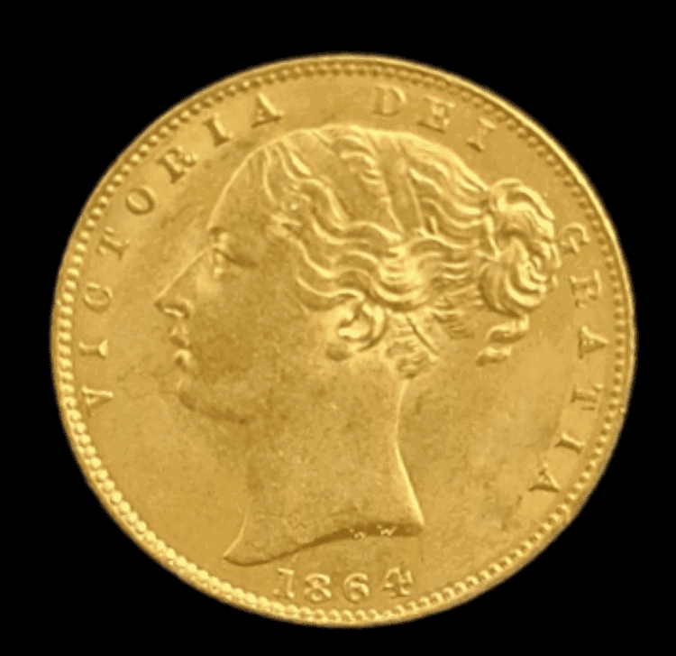 Victoria (1837-1901), Gold Sovereign, 1864, die number 72, second young filleted head left, W.W. incuse on truncation for engraver William Wyon, date below, Latin legend and toothed border surrounding